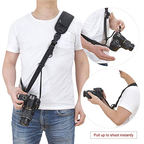 "Title: Camera Shoulder Neck Strap, waka Rapid Sling Camera Strap Quick Release with Safety Tether Adjustable Belt for All DSLR Camera Canon Nikon Sony Olympus, Black