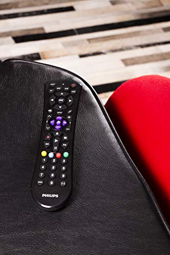 "Title: Philips 4-Device Universal Remote Control, Brushed Black Finish, Sound Bar and Streaming Player Compatible, Preprogrammed for Samsung and Roku devices, works with All Major Brands, SRP9243B/27