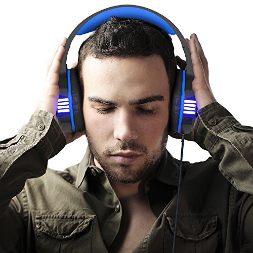 "Title: VersionTech Stereo Gaming Headset for PS4 Xbox One, Over Ear Headphones with Noise Isolating Mic, LED Light, Volume Control for Laptop, PC, Tablet, iMac, PSP, Mobile Phone -Blue