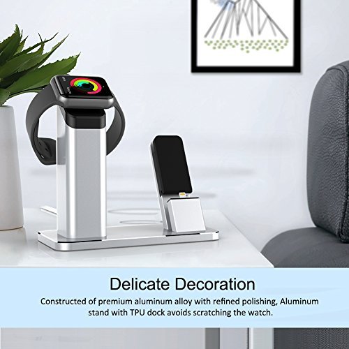 "Title: Yootech Apple Watch Stand, 2 in 1 Charging Dock for Apple Watch Series 3/2/1, iPhone X/8/8Plus/7/7Plus/6s/6s Plus, Silver Aluminum Stand Holder for iPhone and Apple Watch
