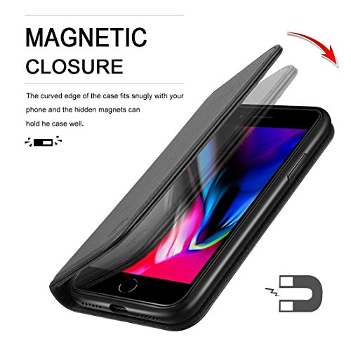 "Title: ZOVER iPhone 8 Plus Case, iPhone 7 Plus Wallet Case Genuine Leather Flip Folio Book Case with Card Holder and Magnetic Closure Black