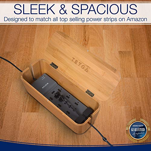 "Title: Bamboo Cable Management Box - Stylish Cord Organizer Box Hides Power Strip and Keeps Cords Untangled - Surge Protector Cover Keeps Children Safe - Eco-Friendly TV Cord Box for Home and Office by TEYGA