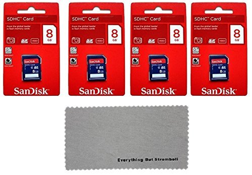 "Title: SanDisk 4 Pack 8 GB Class 4 SD HC Flash Memory Card Retail - With Everything But Stromboli (tm) MicroFiber Cleaning Cloth