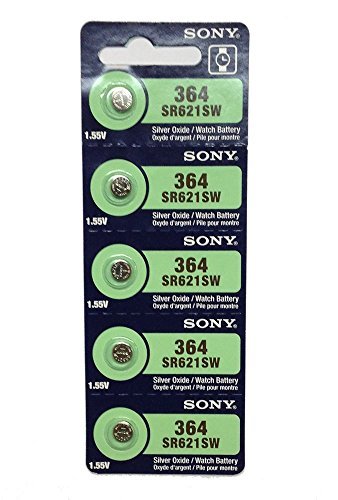 "Title: 5 x Sony 364 SR621SW Silver Oxide 0% Mercury Batteries [ Pack of 5 ]