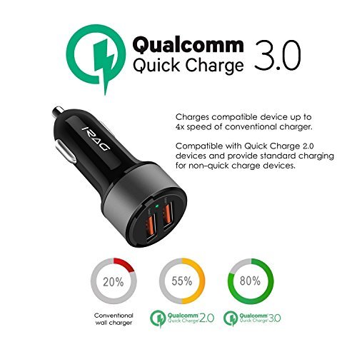 "Title: iRAG 36W Dual USB Quick Charge 3.0 Car Charger for iPhone 7/7 Plus/6s/6s Plus/6/6 Plus/5/5S, iPad, Samsung, Google, LG, HTC, Nexus, Motorola and more