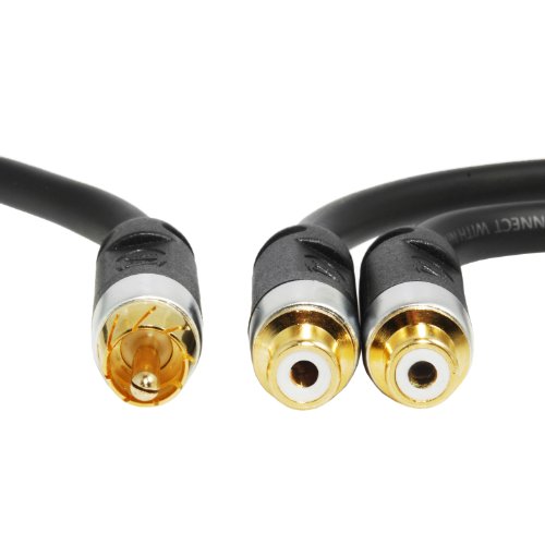 - The Y-Adapter has 1-Male to 2-Female RCA audio plugs. Uniquely gripped color-coded molds make for easy cable handling.