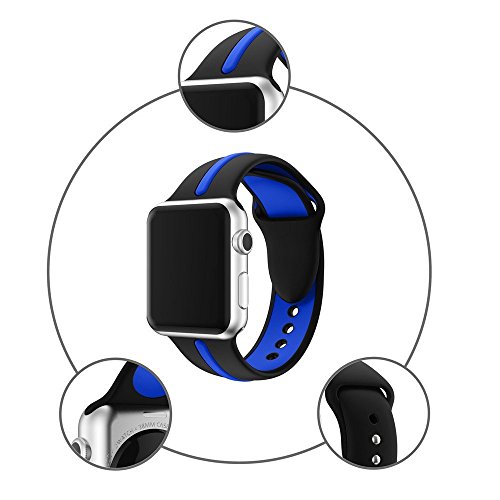 "Title: Wanhua 38mm/42mm Soft Silicone Watch Band for Apple Watch Newly Sport Replacement Wrist Strap Stripe Color Splicing for Apple Watch Bands Series 2 Series 1 Nike+ (42mm, Black & Blue)
