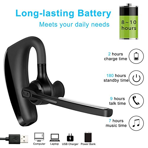 "Title: Bluetooth Headset, Wireless Earpiece V4.1 Handsfree Business Earphone In-ear Earbuds with Noise Cancelling Mic for Office/Driving/Work, Support iPhone X 8 7 Plus 6s 5s iPad Samsung Android