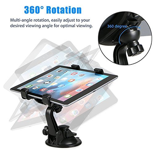 - Super strong windshield mount, keep your tablet stable and safe when you driving. Extended holder locks in place to ensure a tight clamp on Pad.