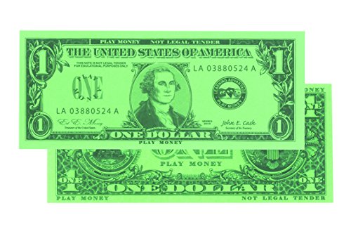Counting and understanding money concepts is a skill that lasts a lifetime. Our Play Money Bills approximate real currency in size and color. Set of 100 packaged in a polybag.